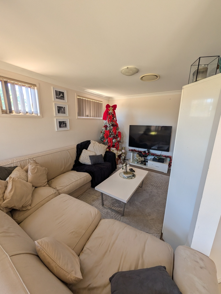 -Downstairs with three living spaces (family room, separate front lounge room and media room).